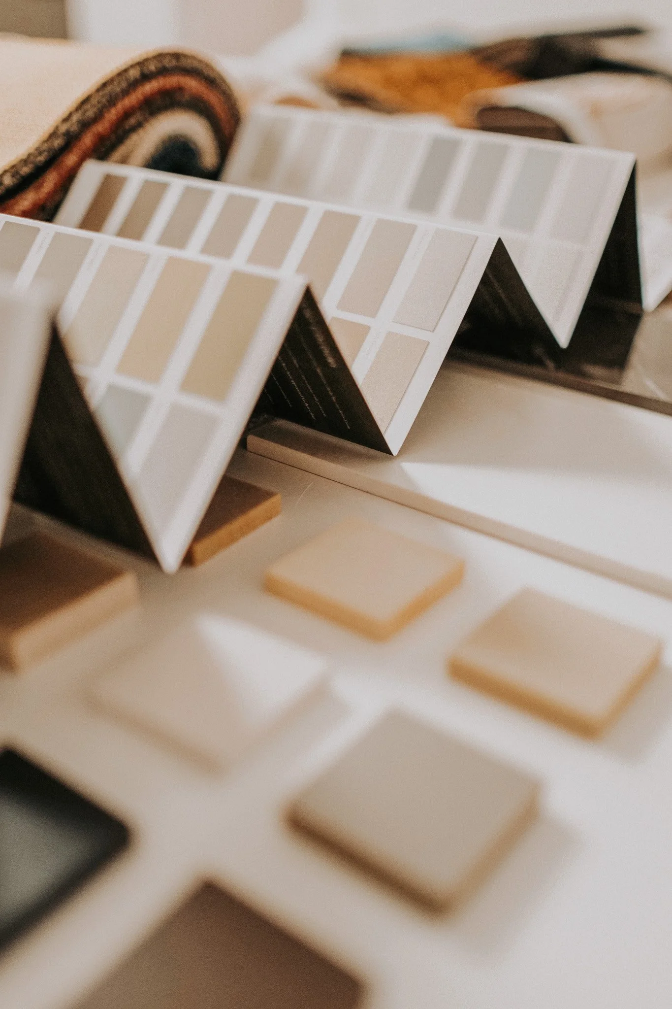 Na het intakegesprek stel ik een persoonlijk moodboard samen om de beoogde sfeer voor de gekozen ruimte(s) te visualiseren. Dit moodboard dient als basis voor het verdere kleur- en materialenplan.